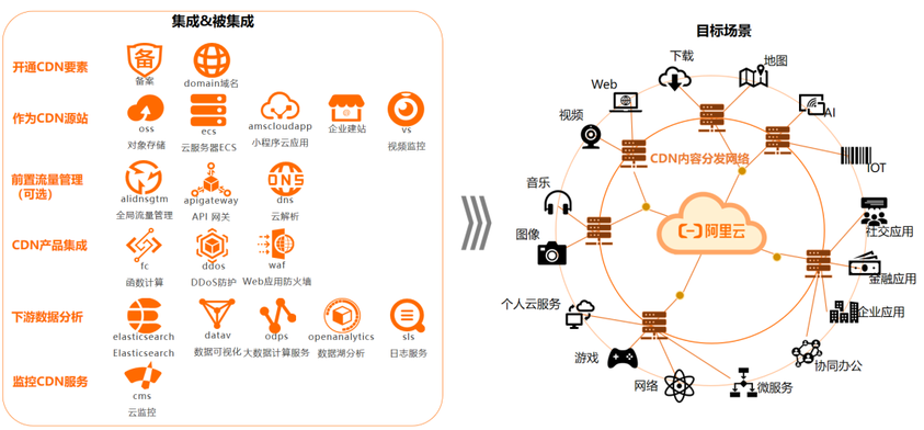 阿里云CDN正在与更多的云服务进行连接、整合,目的是让用户在从接入到开通、到内容分发、到最后的监控的流程链路中,更便捷地接入云上生态。