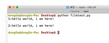 #coding=utf-8 f = open('test.txt', 'r') content = f.readline() print("1:%s"%content) content = f.readline() print("2:%s"%content) f.close()