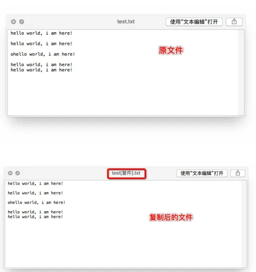#coding=utf-8 oldFileName = input("请输⼊要拷⻉的⽂件名字:") oldFile = open(oldFileName,'r') # 如果打开⽂件 if oldFile: # 提取⽂件的后缀 fileFlagNum = oldFileName.rfind('.') if fileFlagNum > 0: fileFlag = oldFileName[fileFlagNum:] # 组织新的⽂件名字 newFileName = oldFileName[:fileFlagNum] + '[复件]' + fileFlag # 创建新⽂件 newFile = open(newFileName, 'w') # 把旧⽂件中的数据,⼀⾏⼀⾏的进⾏复制到新⽂件中 for lineContent in oldFile.readlines(): newFile.write(lineContent) # 关闭⽂件 oldFile.close() newFile.close()
