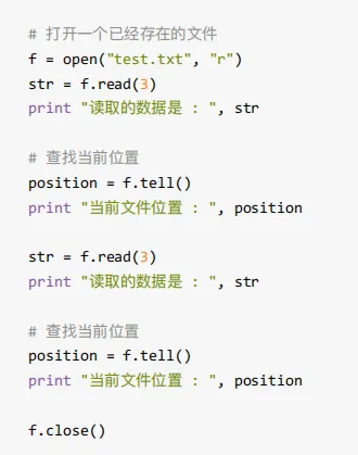在读写⽂件的过程中,如果想知道当前的位置,可以使⽤tell()来获取