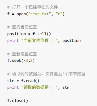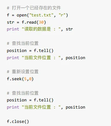 如果在读写⽂件的过程中,需要从另外⼀个位置进⾏操作的话,可以使⽤ seek()