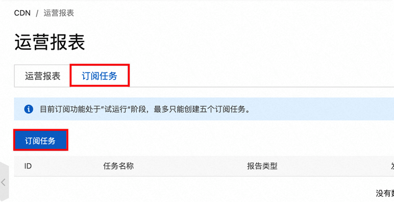 如果您需要将运营报表推送到邮件,可以在订阅任务中创建订阅,注意,订阅报表前需要先在运营报表中定制对应报表。