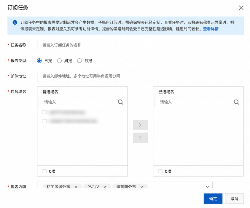 - 运营报表中的数据只有已成功添加的加速域名,且运营报表需定制后才会进行生产统计分析。