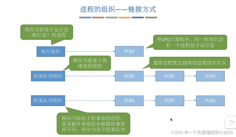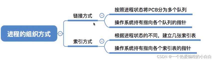 注:进程的组成讨论的是一个进程内部由哪些部分构成的问题,而进程的组织讨论的是多个进程之间的组织方式问题