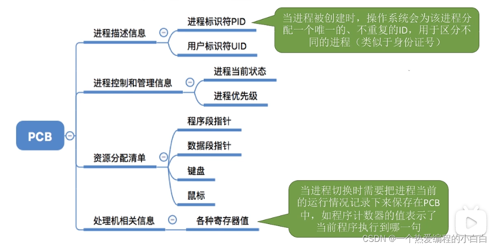 例如,所谓创建进程,实质上是创建进程实体中的PCB;而撤销进程,实质上是撤销进程实体中的PCB。