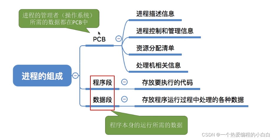 不过,除非题目专门考察二者区别,否则可以认为进程实体就是进程。因此我们也可以说“进程由程序段、数据段、PCB三部分组成