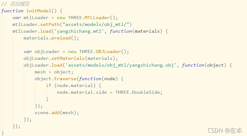 养殖场3D展示主要使用OBJLoader和MTLLoader加载模型并直接赋予材质进行展示。