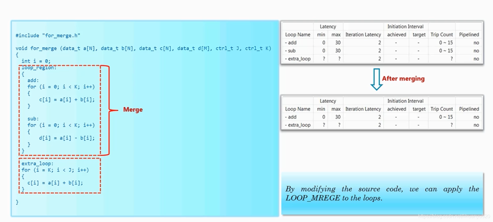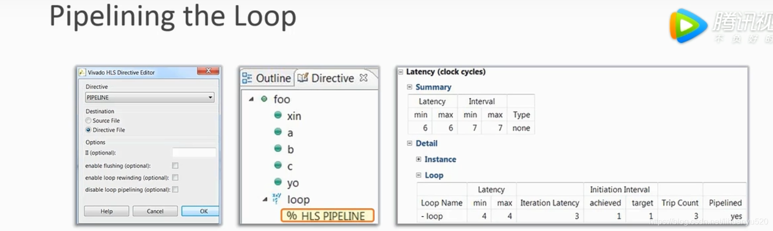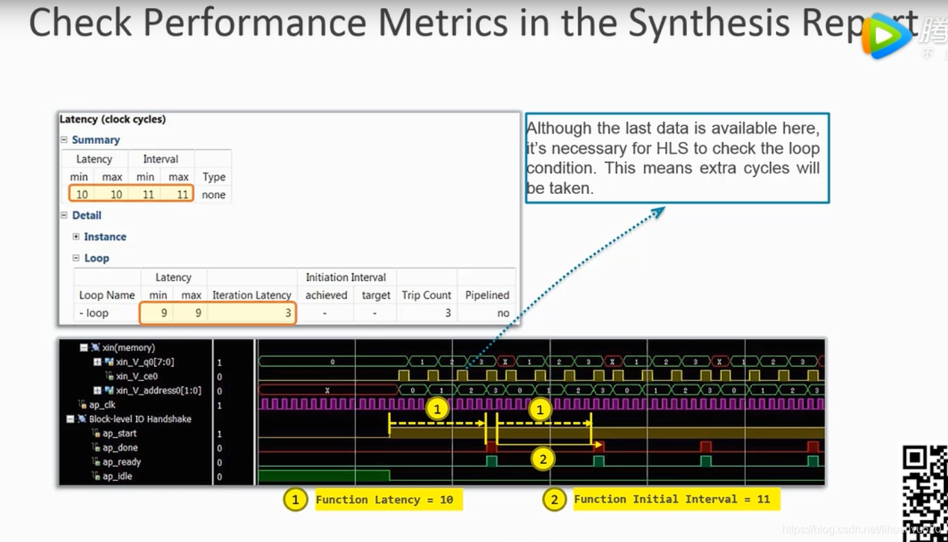 loop interation latency(Loop II) :两次循环直接间隔了几个cycle