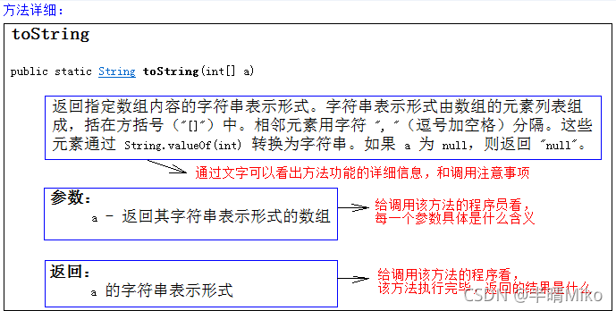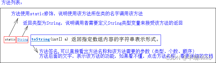 如: 查看Arrays类中将int类型数组转换成字符串的toString方法。