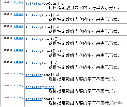 toString方法,他们之间属于重载关系,分别用于打印不同类型的数组。