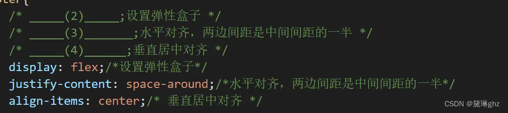 /*自定义图标字体*//* ____(1)_____ { */@font-face{ font-family: 'iconfont'; src: url('../font/iconfont.eot'); src: url('../font/iconfont.eot?#iefix') format('embedded-opentype'), url('../font/iconfont.woff2') format('woff2'), url('../font/iconfont.woff') format('woff'), url('../font/iconfont.ttf') format('truetype'), url('../font/iconfont.svg#iconfont') format('svg'); } body{ margin:0; padding:0; } footer{ /* _____(2)_____;设置弹性盒子 *//* _____(3)_______;水平对齐,两边间距是中间间距的一半 *//* _____(4)______;垂直居中对齐 */display: flex;/*设置弹性盒子*/justify-content: space-around;/*水平对齐,两边间距是中间间距的一半*/align-items: center;/* 垂直居中对齐 */position: fixed; bottom:0; left:50%; transform: translateX(-50%); width: 100%; height: 50px; border-top:1pxsolid#ccc; max-width: 760px; font-size: 12px; text-align: center; } footerdiv{ width: 80px; } footerdivi{ /* ____(5)_______;设置资自定义图标字体 */font-family: iconfont;/*设置资自定义图标字体*/font-size: 18px; font-style: normal; display: block; } footer.homei:before{ content:"\e6ce"; } footer.orderi:before{ content:"\e67c"; } footer.shopi:before{ content:"\e60c"; } footer.useri:before{ content:"\e66e"; }