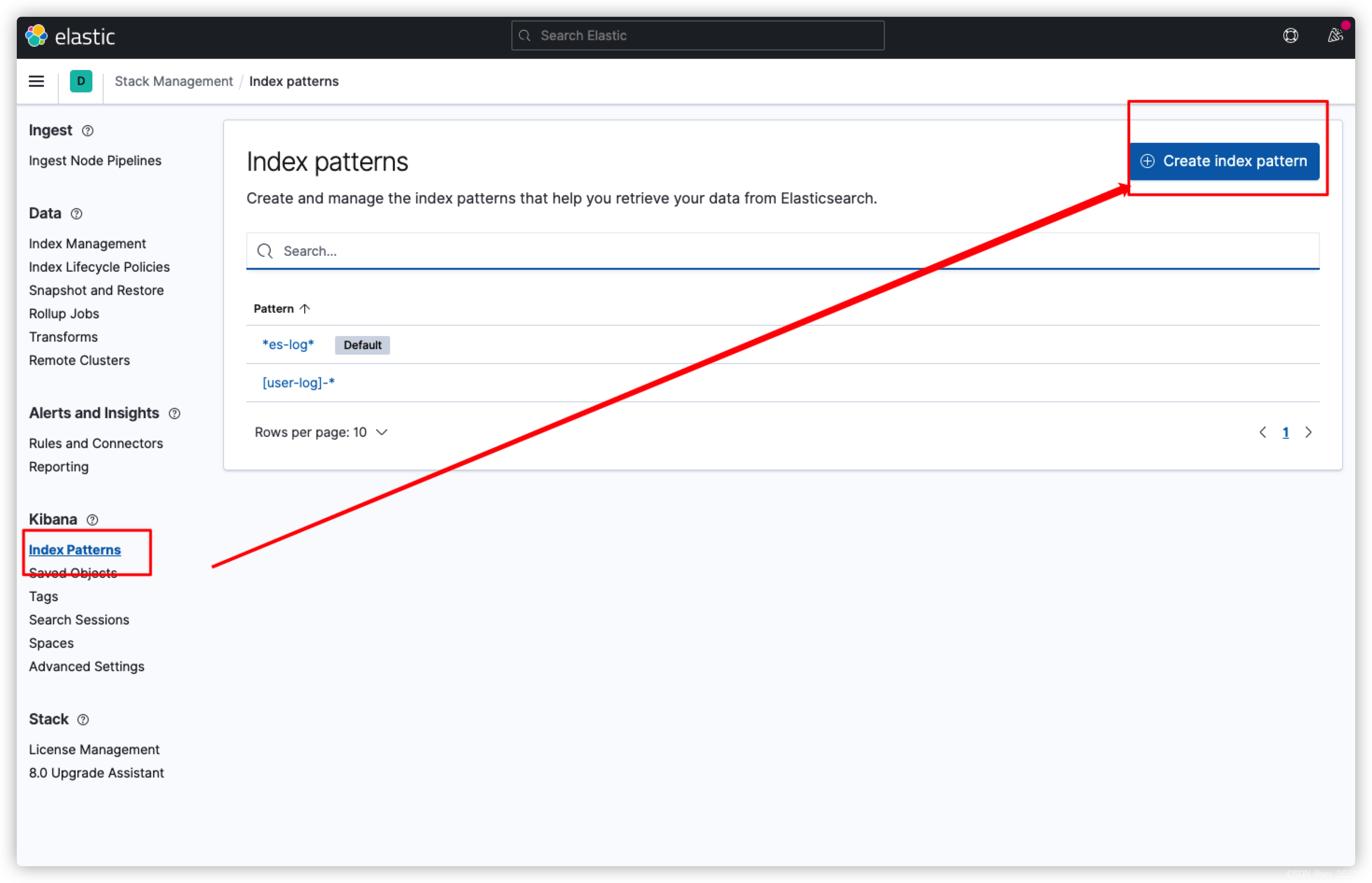 可以看出日志的传输路线是:微服务产生日志,并将日志数据保存到磁盘中的.log文件中,filebeat监听log文件,将其数据收集并结构化后传输到logstash上,logstash将日志进行过滤收集,再传输到elasticsearch上,elasticsearch把日志作为索引进行存储并且构造对应倒排索引,kibana可视化呈现日志,需要查询时kibana调用elasticsearch进行日志数据的查询