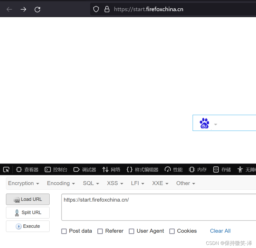 4.打开一个网页,按F12键,可以看到下面有一个hackbar选项,点击即可。