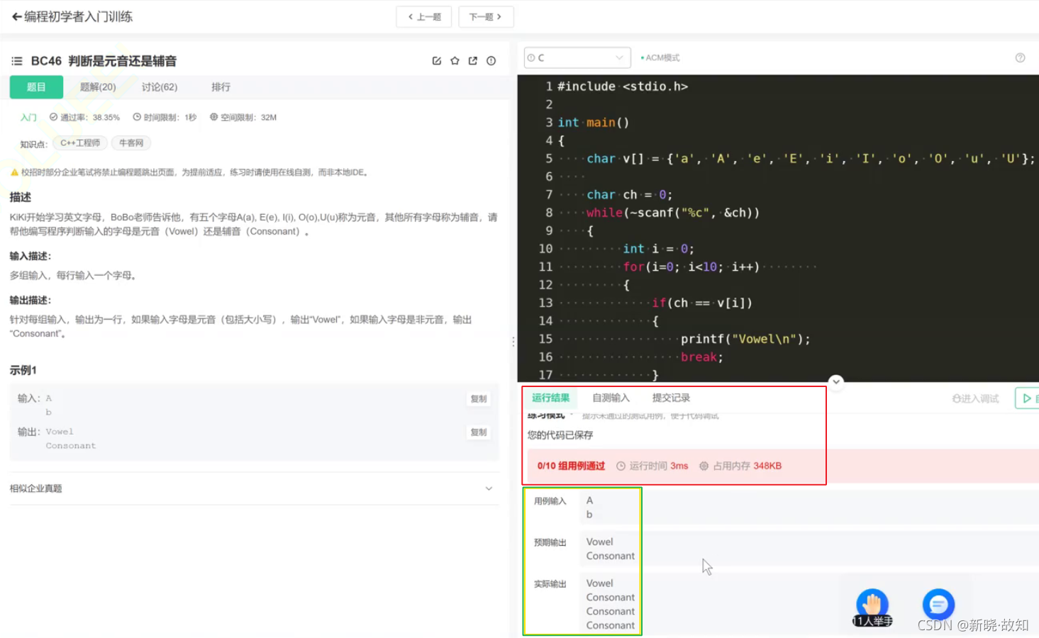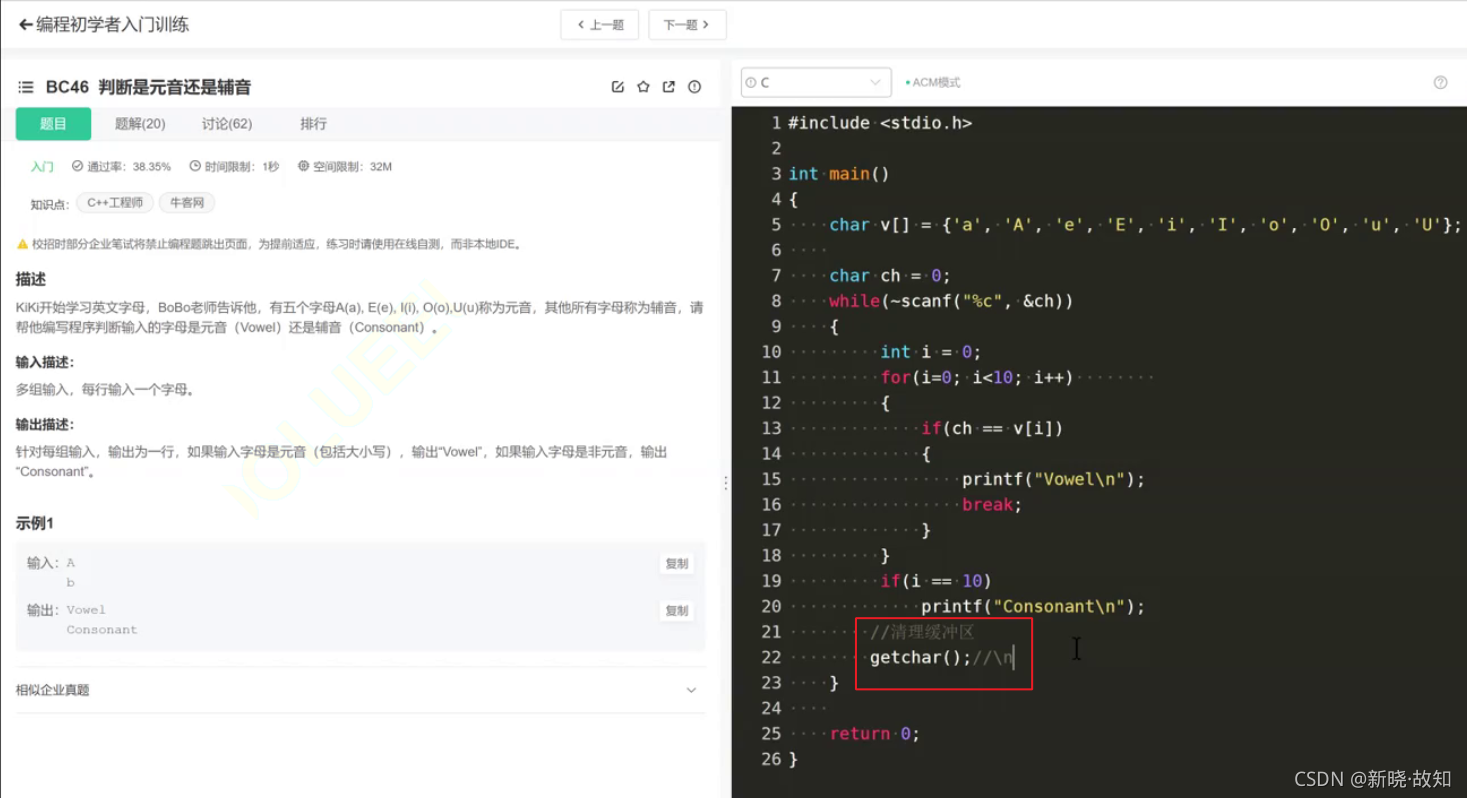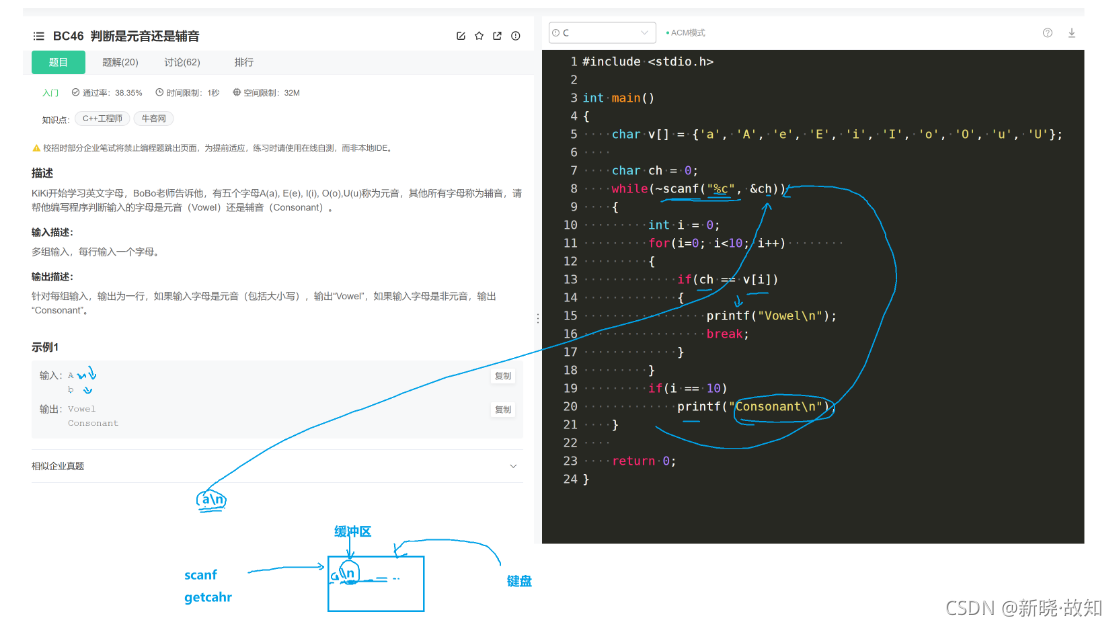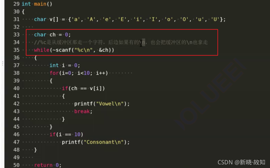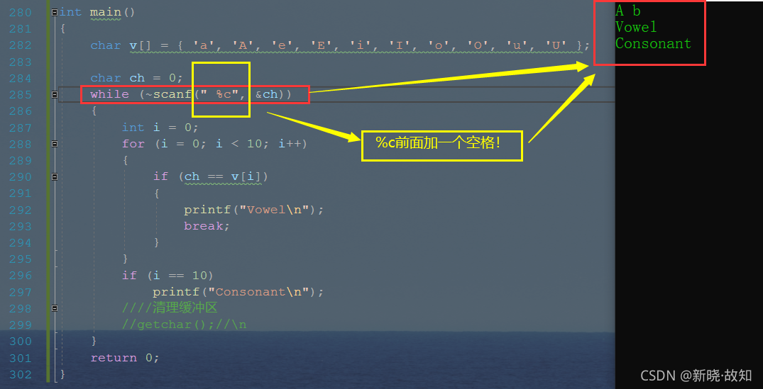 当scanf读取的时候,第一个字符正常读取,但会在缓冲区读取\n,传给&ch,而\n既不是元音也不是辅音,则总输出的结果与预期不符!