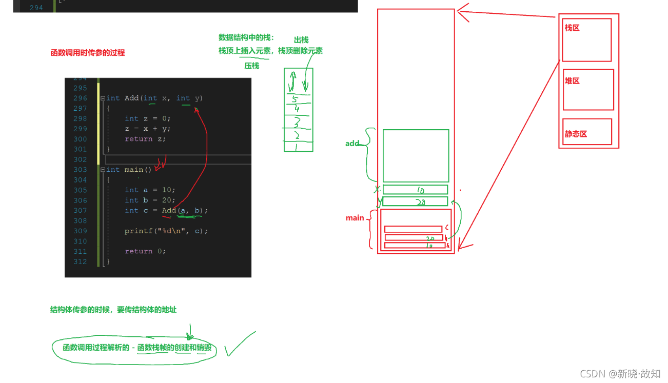 如果传递一个结构体对象的时候,结构体过大,参数压栈的的系统开销比较大,所以会导致性能的
