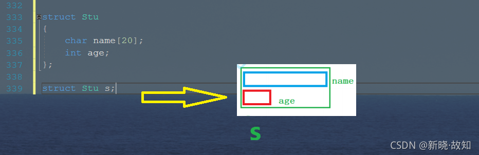 struct Stu { char name[20]; int age; }; struct Stu s;