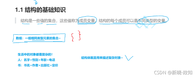 结构是一些值的集合,这些值称为成员变量。结构的每个成员可以是不同类型的变量。