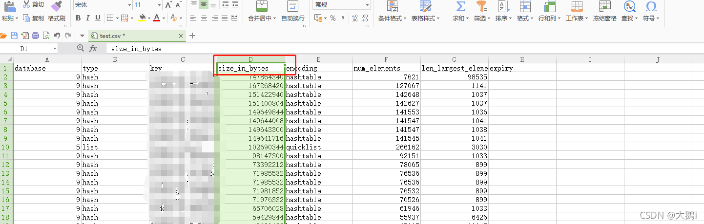 导出到Windows电脑 按照size_in_bytes 栏 降序 即可 排查出 占用内存最大的key,如图单个key 占用700m !!! 无语至极