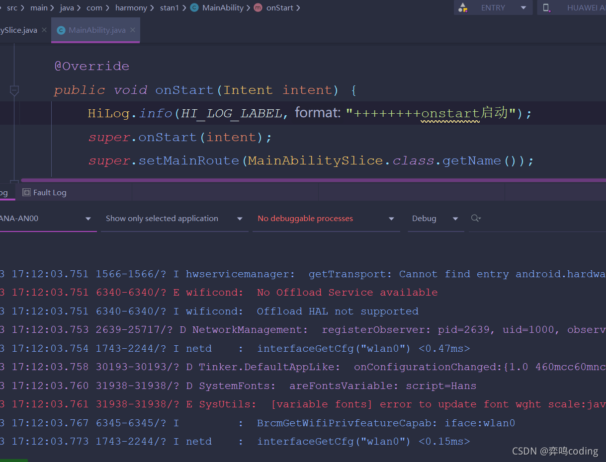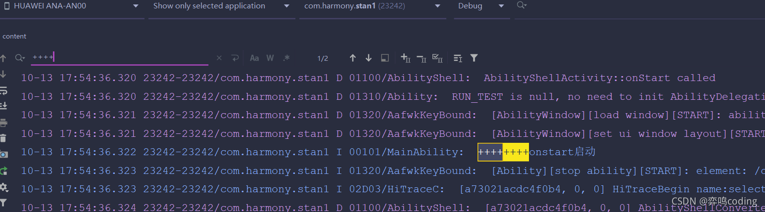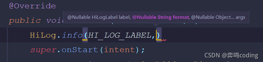 我们有了HI_LOG_LABEL这个常量后,就可以打印日志了,在onStart方法启动时就能够输出一个日志