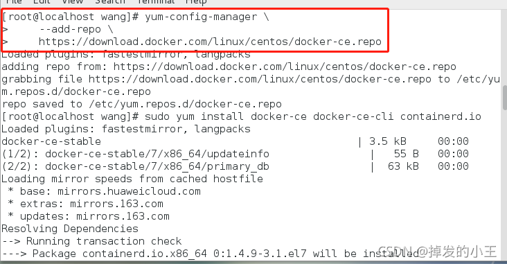 sudo yum-config-manager \ --add-repo \ https://download.docker.com/linux/centos/docker-ce.repo