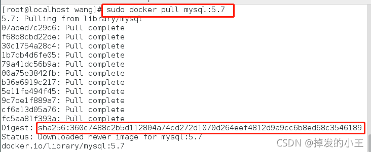 sudo docker run -p 3306:3306 --name mysql \ -v /mydata/mysql/log:/var/log/mysql \ -v /mydata/mysql/data:/var/lib/mysql \ -v /mydata/mysql/conf:/etc/mysql \ -e MYSQL_ROOT_PASSWORD=root \ -d mysql:5.7 ####这里往下是解释,不需要粘贴到linux上############# --name 指定容器名字 -v 将对应文件挂载到linux主机上 -e 初始化密码 -p 容器端口映射到主机的端口(把容器的3306映射到linux中3306,这样windows上就可以访问这个数据库) -d 后台运行