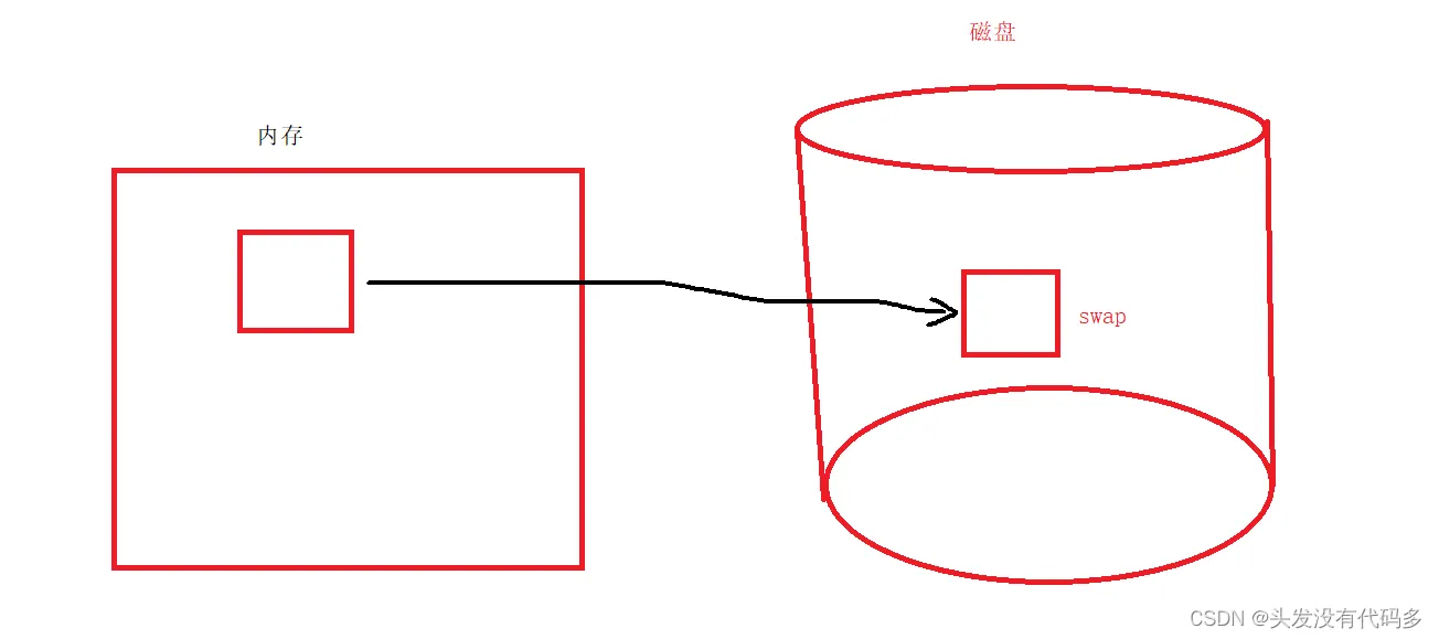 磁盘分区中有一个swap,当内存大部分资源被占用,内存快不足的时候,操作系统会把长时间不执行的进程代码和数据换出到磁盘,也就是换到swap