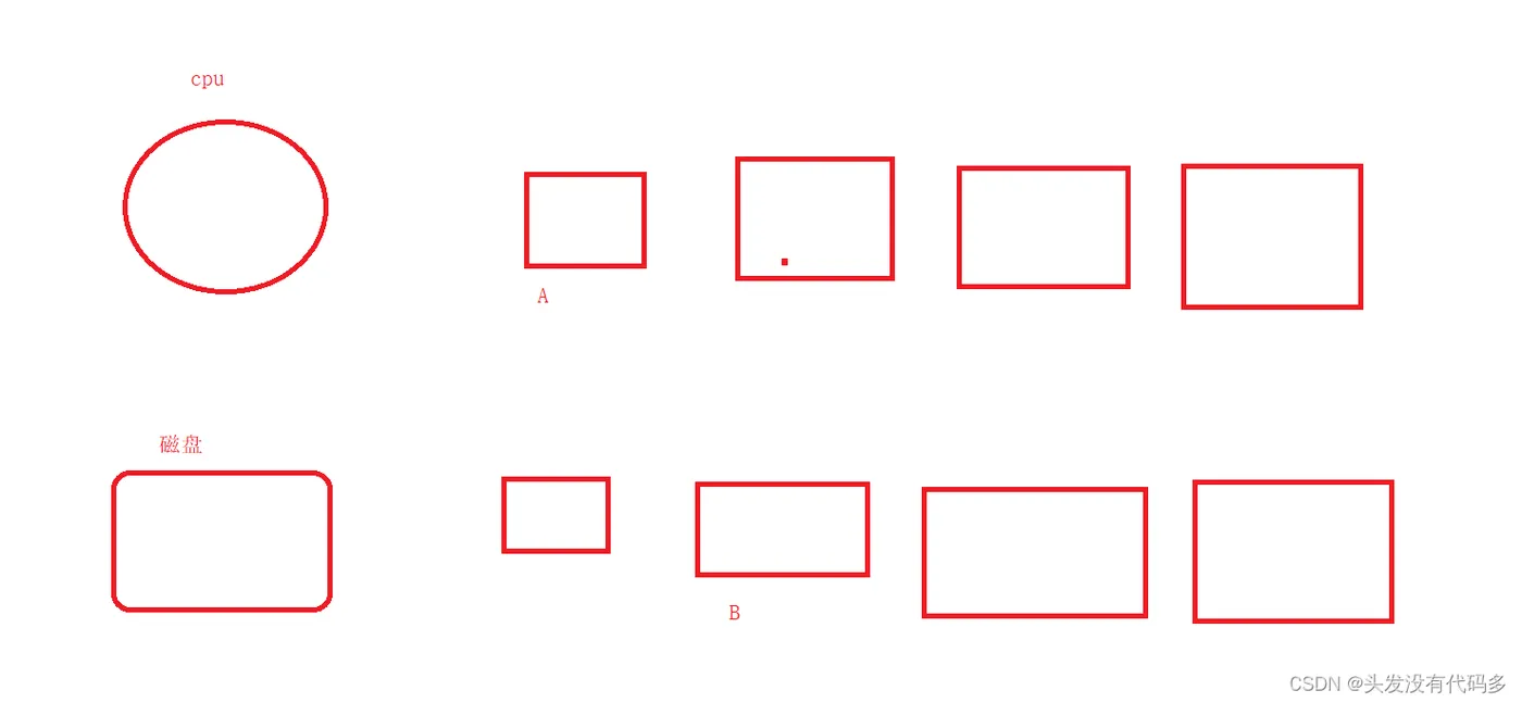 准备进入cpu的队列叫运行队列,A就在运行队列,而B还在其它队列排队,此时B的状态就是阻塞状态,这个队列就叫阻塞队列