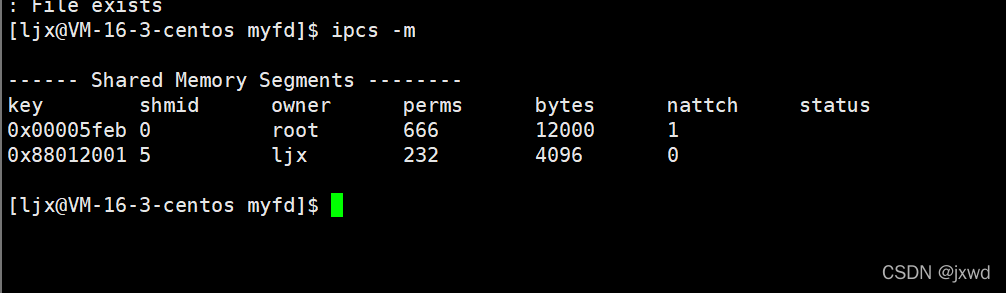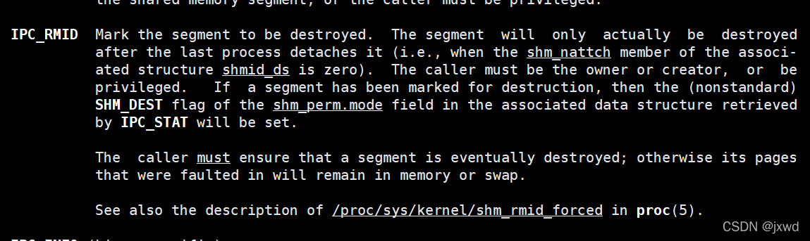 所以,一个共享内存的释放要么是手动释放,要么是进行了系统重启等强制让其释放的手段才可以。