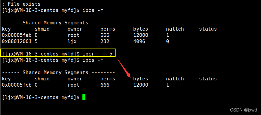 删了后就没了。(注意我们这里后面跟的数字是shmid的值,同样的理由,这里针对的是用户层面的值)