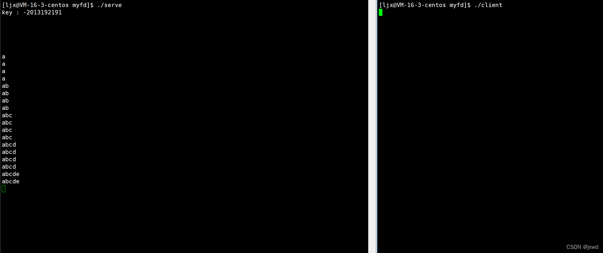 如上如,我们一个窗口用来去跑serve的代码,另外一个窗口去跑client的代码。