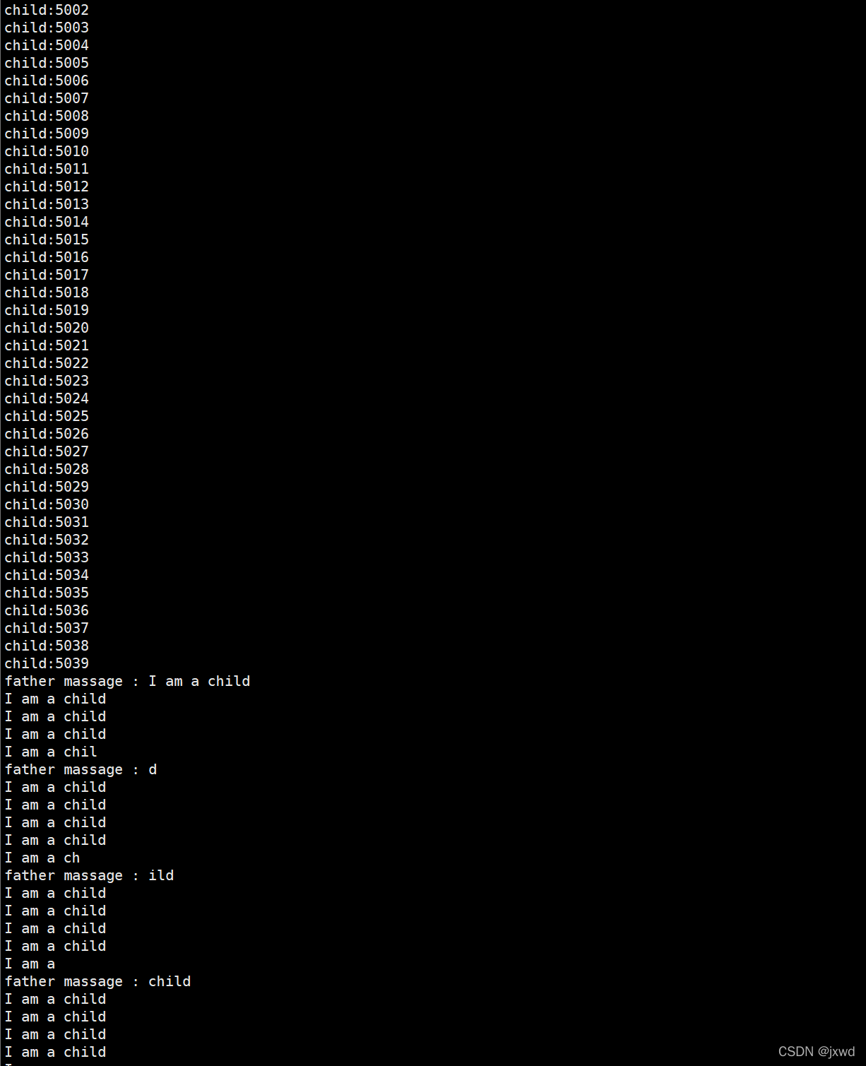 这个时候,父进程更慢,子进程更快。也就是说,子进程写的速度要大于父进程读的速度。