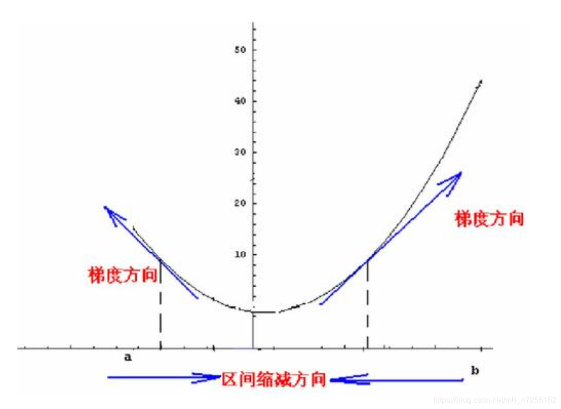 如果是a点,梯度为负(导数值为负),那么就需要右移,导数值为负就应该加上它