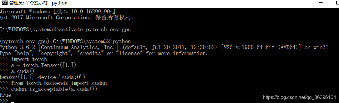 1. import torch # 如正常则静默 2. 3. a = torch.Tensor([1.]) # 如正常则静默 4. 5. a.cuda() # 如正常则返回"tensor([ 1.], device='cuda:0')" 6. 7. from torch.backends import cudnn # 如正常则静默 8. 9. cudnn.is_acceptable(a.cuda()) # 如正常则返回 "True"