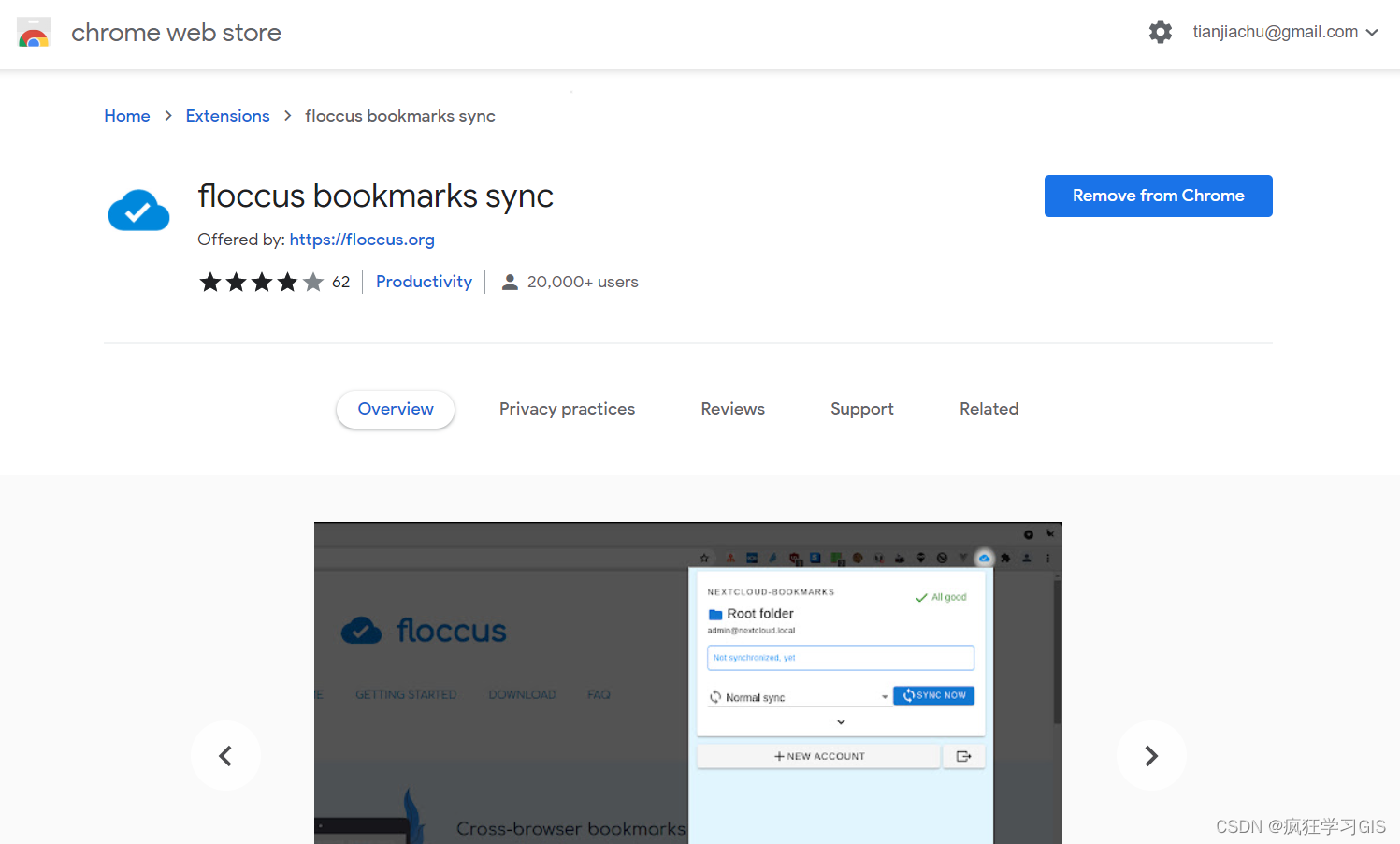 本文以Chrome浏览器为例来介绍详细的操作方法。首先,需要在浏览器中下载、安装floccus插件;下载的方式有很多,可以在浏览器自带应用商店(例如Chrome浏览器的Chrome Web Store,如下图)中下载,也可以在floccus插件的官网(https://floccus.org/)下载,如下下图。
