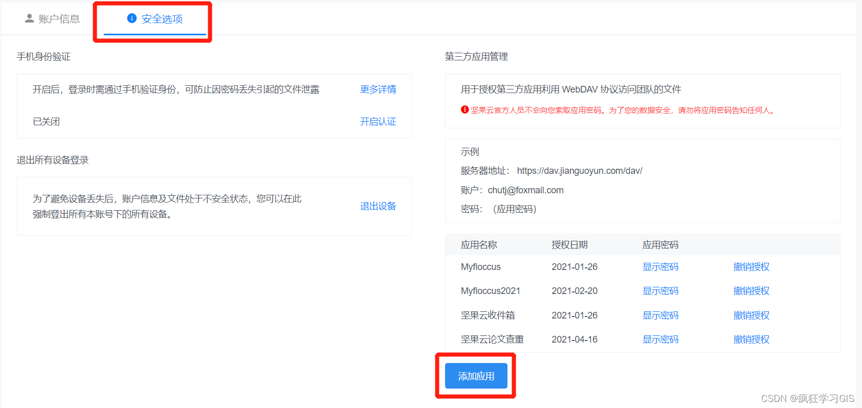 此时,即可在“第三方应用管理”处看到我们刚刚生成的应用名称与密码。