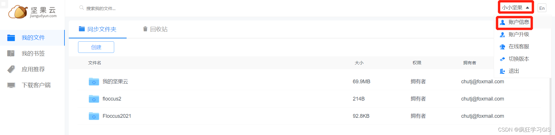 打开我们的坚果云,点击右上角的用户名称,随后点击“账户信息”。