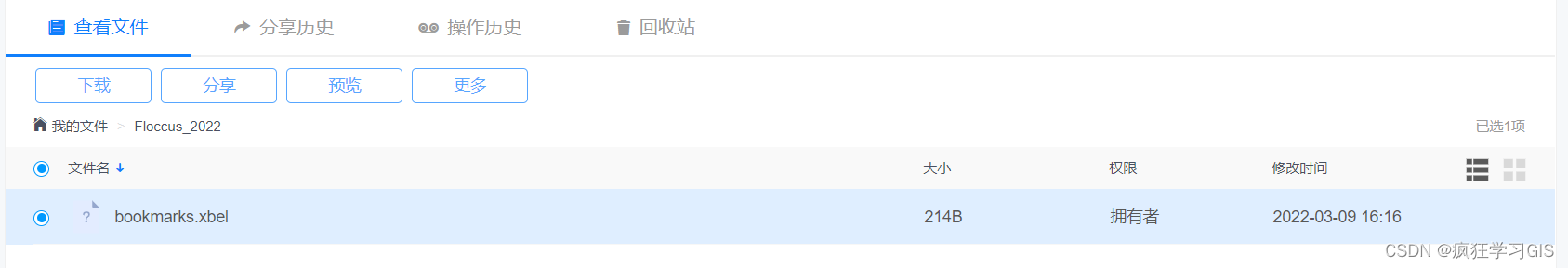若不放心,还可以进入我们的坚果云查看bookmarks.xbel文件的信息,发现此时该文件的大小已经变大,且文件修改时间也发生了变化,说明我们的书签确实已经同步到了该文件中。