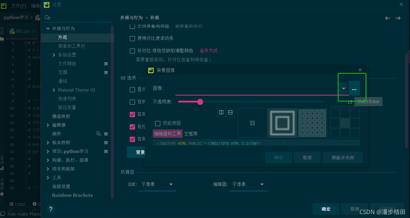 找到图中所示位置可调整背景图透明度和显示方式,小伙伴们自己根据情况自行进行调整。