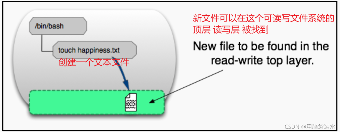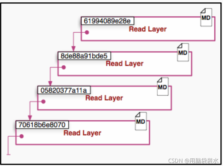需要注意的是,在一个运行中的容器内部,这些层是不可见的。