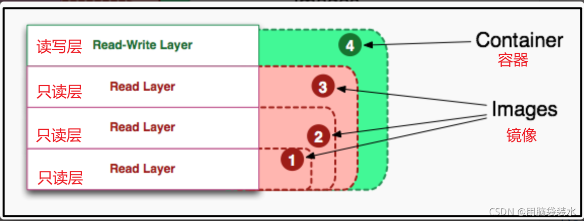 要点:容器 = 镜像 + 读写层。并且容器的定义并没有提及是否要运行容器。