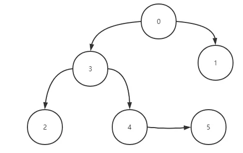 对于上图来说,使用深度优先搜索的路线为:0 -> 3 -> 1 -> 2 -> 4 -> 5