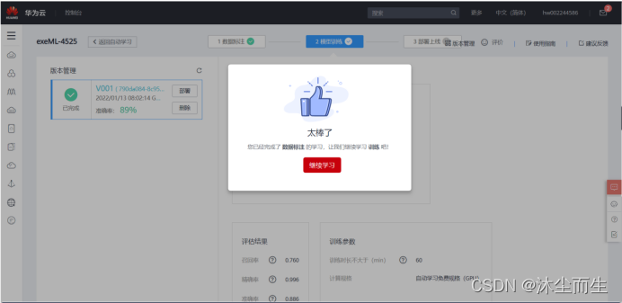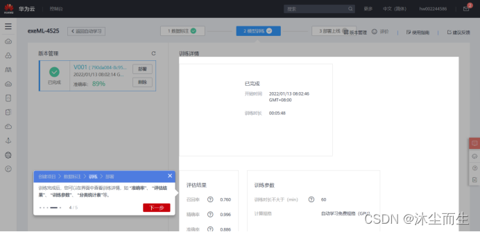 完成训练操作(注:这里的提示可能有一个小小的问题,不过还是不影响我们操作滴!)