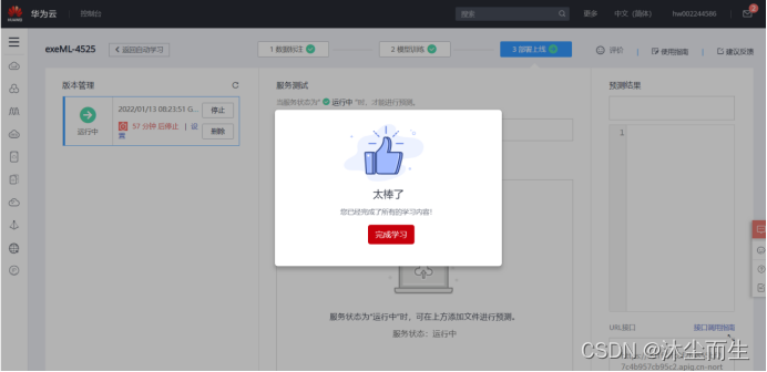 在初步了解华为AI平台ModelArts之后,不仅新手层面简单易懂,而且更让我们体验了AI智能扫描检测系统,我个人层面看好它们,未来发展进程中,它们的发展,如果用四个字形容的话,就是大势所趋。所以,希望华为加油!更期待在华为AI平台ModelArts层面有更高的突破!