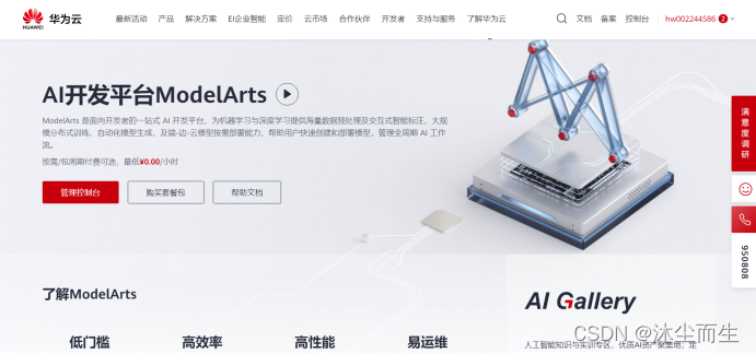 AI平台ModelArts 是华为全栈全场景AI 解决方案面向用户和开发者的门户,作为一站式 AI开发平台,其提供海量数据预处理、半自动化标注、大规模分布式训练、自动化模型生成,及端 - 边 - 云模型按需部署能力,可以帮助用户快速创建和部署模型,管理全周期 AI工作流。