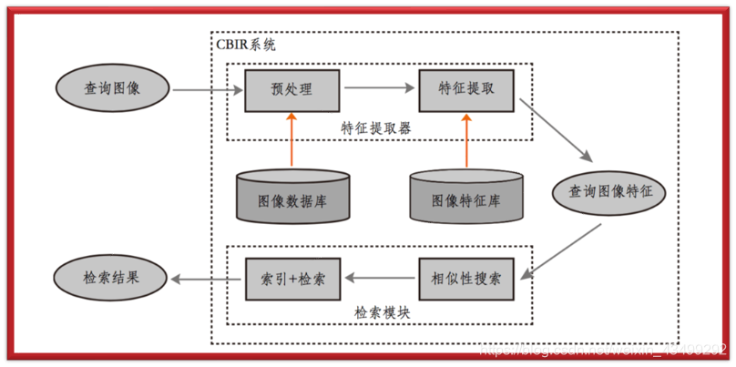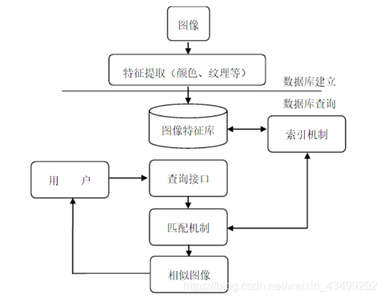 基于内容的图像检索技术的主要思想是根据图像的一些低级视觉特征,如颜色、纹理、图像对象的形状以及它们之间的空间关系等内容特征作为图像的索引,计算基准查询图像和图像数据库中图像的相似距离,按照相似度匹配进行检索。