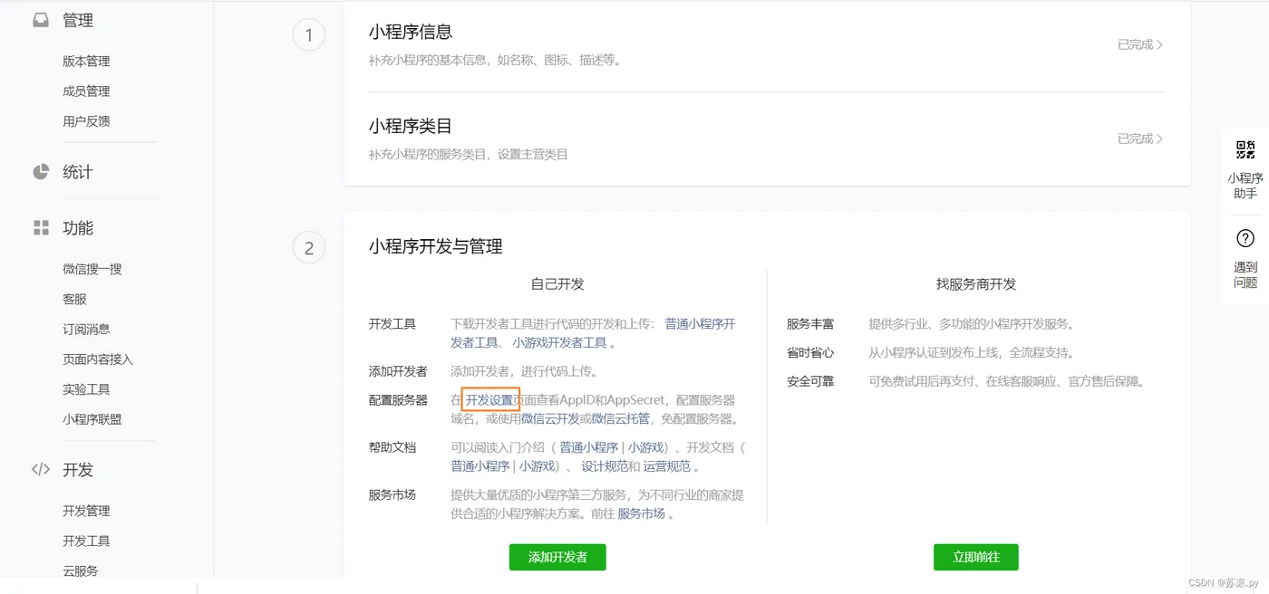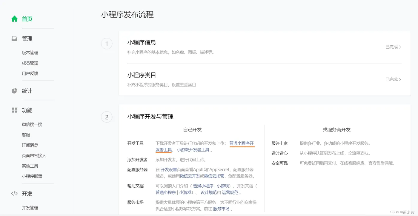 在上述操作下,我们注册成功登录进去看到如下界面。点击普通小程序开发工具。