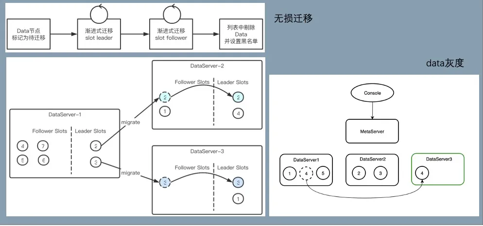 - 数据使用固定 slot 分片,meta 提供调度能力,slot 的调度信息通过 slotTable 保存,session/data 节点可容忍该信息的弱一致性,提升鲁棒性。