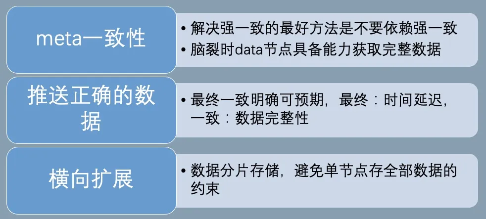 架构的改造思路:在保留 V5 的存储分片架构的同时,重点的目标是优化元信息 meta 一致性和确保推送正确的数据。