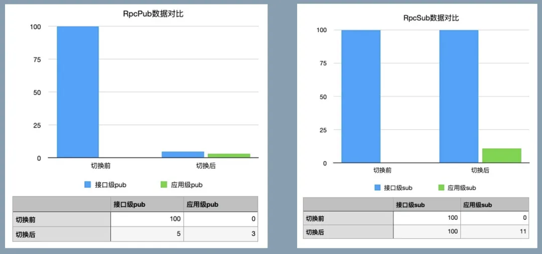 上图是一个集群切换应用级后的效果,其中切换后剩余部分接口级 pub 是为了兼容转换出来的数据,接口级 sub 没减少也是为了兼容接口级发布。如果不考虑兼容性,pub 数据减少高达 97%。极大的减轻了数据规模的对集群的压力。