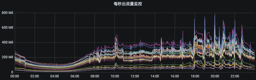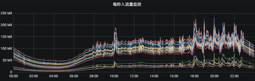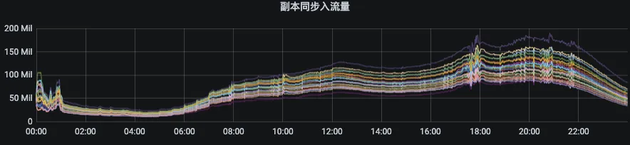 如下图所示,节点入流量由140MB/s左右突增到250MB/s,而出流量则从400MB/s左右突增至800MB/s。如果没有限流机制,那么集群的多个节点将有被这些异常流量打挂的风险,甚至造成集群雪崩。